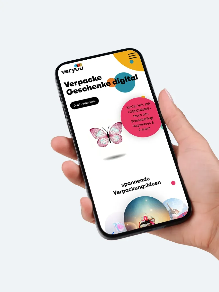 The first version of the platform veryuu.de went online in 2018. I wanted to find out how I could send joy into the world through digital gifts. From the very beginning, it was exciting. Using paid content on Instagram, I tested the idea in many countries: How do people respond? Who reacts? Who visits my website?